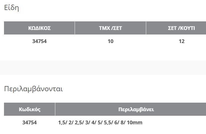 Κλειδιά Αλλεν Πολύ Μακρία TURBALL ΒΕΝΜΑΝ ΣΕΤ 9 ΤΜΧ