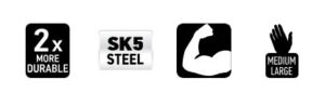 - Λάμα από υψηλής ποιότητας κράμα ανθρακούχου χάλυβα, με ακόνισμα ακριβείας και σκλήρυνση για να διατηρεί την αιχμηρότητά του μακροχρόνια