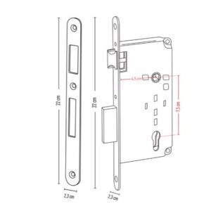 Κλειδαριά Μεσόπορτας 45/75mm Ορειχάλκινο HUGO