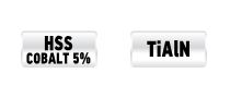 - Από ταχυχάλυβα (HSS) με ειδική επίστρωση TiAlN (νιτρίδιο τιτανίου αλουμινίου), για μέγιστη διάρκεια ζωής