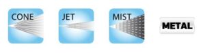 Ρυθμιζόμενο στόμιο με 3 μοτίβα ψεκασμού: κωνικό, με πίεση, ομίχλη