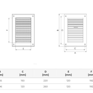 Περσίδα εξαερισμού με εξωτερικές διαστάσεις 170×170 και ρυθμιζόμενο κανάλι με ειδικούς σφιγκτήρες, χάρη στο οποίο προσαρμόζεται σε οποιοδήποτε σχήμα μεταξύ 80 και 150mm. Η περσίδα χρησιμοποιείται σε συστήματα εξαερισμού ώστε ο εσωτερικός αέρας να μπορεί να αποβάλλεται στο περιβάλλον. Ως αποτέλεσμα, ο χώρος σας θα μένει καθαρός, χωρίς την ύπαρξη οσμών και βλαβερών σωματιδίων.