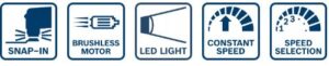 - Η λειτουργία Snap-in επιτρέπει γρήγορη και εύκολη αλλαγή των εξαρτημάτων του εργαλείου