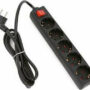 Πολύπριζο Στεγανό Καουτσούκ 4 Θέσεων Mε Καλώδιο Και Διακόπτη 3X1,5mm 1,5m Μαύρο Με Προστασία Επαφών Eurolamp