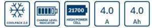 - Συμπαγές μέγεθος και μικρό βάρος: Ίδια απόδοση με μια στάνταρ μπαταρία 18 V 4,0 Ah χάρη στην τελευταία μας τεχνολογία στοιχείων