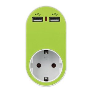 ΠερισσότεραΓρήγορη προβολήΑντάπτορας Ασφαλείας Σε Σούκο και 2 USB Πράσινο Eurolamp