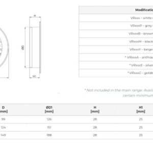 Στρογγυλή πλαστική περσίδα VR για τον αερισμό προσαγωγής και απαγωγής των χώρων. Εύκολη εγκατάσταση, απλή φροντίδα. Μπορούν να χρησιμοποιηθούν σε τοίχους, οροφές, έπιπλα και για άλλους σκοπούς. Οι περσίδες είναι κατασκευασμένες από έγχρωμο πλαστικό κράμα που είναι ανθεκτικό στις γρατζουνιές και τις αλλαγές χρώματος. Η κατασκευή της περσίδας περιλαμβάνει ήδη ένα πλέγμα για έντομα. Οι περσίδες εξαερισμού διατίθενται σε διάφορα τυποποιημένα μεγέθη και χρώματα.